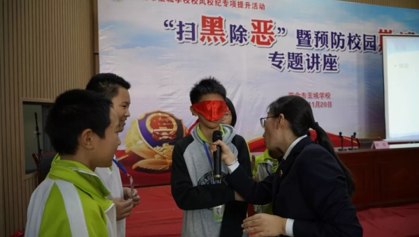 为了让讲解通俗易懂,刘芸还通过观看动漫小视频、邀请同学上台模拟表演校园欺凌情景的方式,让学生们在寓教于乐的氛围中了解掌握法律知识。现场气氛热烈,同学们用一浪高过一浪的掌声展示了大家的欢快而热烈的情绪。