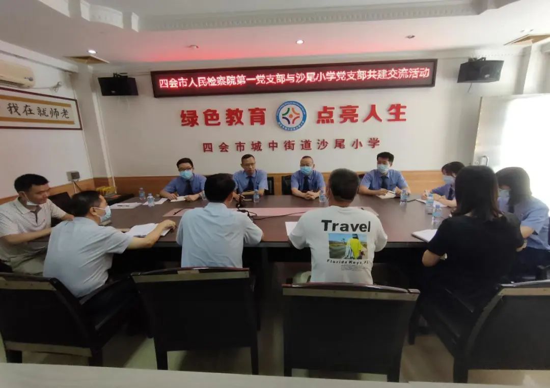 为充分发挥党建引领作用,切实激发党建活力,带动支部间的优势互补,增强为人民群众办实事的工作实效,近日,我院第一党支部全体党员在党组成员、副检察长邓小明的带领下前往沙尾小学党支部开展共建交流活动。